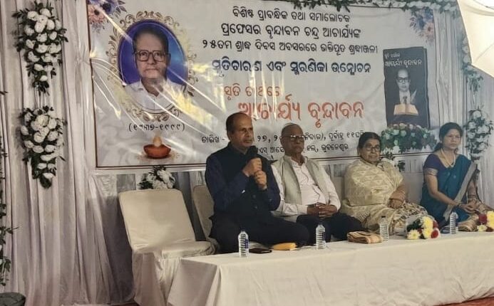 ଭୁବନେଶ୍ଵର: ଓଡିଶାର ଖ୍ୟାତନାମା ପ୍ରାବନ୍ଧିକ ଓ ସମାଲୋଚକ ତଥା ସମ୍ବଲପୁର ବିଶ୍ଵ ବିଦ୍ୟାଳୟର ପ୍ରାକ୍ତନ ଓଡ଼ିଆ ପ୍ରଫେସର ବୃନ୍ଦାବନ ଚନ୍ଦ୍ର ଆଚାର୍ଯ୍ୟଙ୍କ ୨୫ତମ ଶ୍ରାଦ୍ଧ ବାର୍ଷିକୀ ଭୁବନେଶ୍ଵର ସ୍ଥିତ ଓ. ଏ. ଏସ. ଆସୋସିଏସନ ସଭାଗୃହ ରେ ପାଳିତ ହୋଇଯାଇଅଛି । ଏଥିରେ ବର୍ଷୀୟାନ୍ ସାହିତ୍ୟିକ ପ୍ରଫେସର ବାଳକୃଷ୍ଣ ଶତପଥୀ ମୁଖ୍ୟ ଅତିଥି ଓ ପ୍ରଫେସର ସଂଘମିତ୍ରା ମିଶ୍ର ମୁଖ୍ୟ ବକ୍ତା ଭାବେ ଯୋଗଦେଇ ପ୍ରଫେସର ଆଚାର୍ଯ୍ୟଙ୍କୁ ଓଡିଆ ସମାଲୋଚନା ସାହିତ୍ୟର ଜଣେ ଧୂରୀଣ ସ୍ରଷ୍ଟl ଥିଲେ ବୋଲି ଅଭିହିତ କରିଥିଲେ । ତାଙ୍କର ଦୃଷ୍ଟିଭଙ୍ଗୀ , ଉଦାର ମାନସିକତା ଓ ନିରଳସ ଜୀବନ ଚର୍ଯ୍ୟାର ଉଚ୍ଚ ପ୍ରଶଂସା କରିଥିଲେ । ଅନ୍ୟମାନଙ୍କ ମଧ୍ୟରେ ଡଃ ମଥୁରେନ୍ଦ୍ର ପୃଷ୍ଟି, ପ୍ରଫେସର ଆଚାର୍ଯ୍ୟଙ୍କ ସମଗ୍ର ସାହିତ୍ୟ ସୃଷ୍ଟିକୁ ଗୋଟିଏ ଗ୍ରନ୍ଥାବଳୀରେ ପ୍ରକାଶ କରିବା ପାଇଁ ଆହ୍ଵାନ ଦେଇଥିଲେ । ଏହି ଅବସରରେ ଡ଼ଃ ବିବେକାନନ୍ଦ ପାଣିଗ୍ରାହୀ ମଧ୍ୟ ସ୍ବର୍ଗତ ଆଚାର୍ଯ୍ୟଙ୍କ ବ୍ୟକ୍ତିତ୍ଵର ସ୍ମୃତି ଚାରଣ କରିଥିଲେ । ଏ ଶ୍ରଦ୍ଧା ସୁମନର ଆୟୋଜନ ଆଚାର୍ଯ୍ୟ ପରିବାର ତରଫରୁ କରାଯାଇଥିଲା । ସଭାରେ ଓଡ଼ିଶାର ବିଭିନ୍ନ ପ୍ରାନ୍ତରରୁ ଅନେକ ସାହିତ୍ୟ ଅନୁରାଗୀ ଯୋଗ ଦେଇଥିଲେ ।