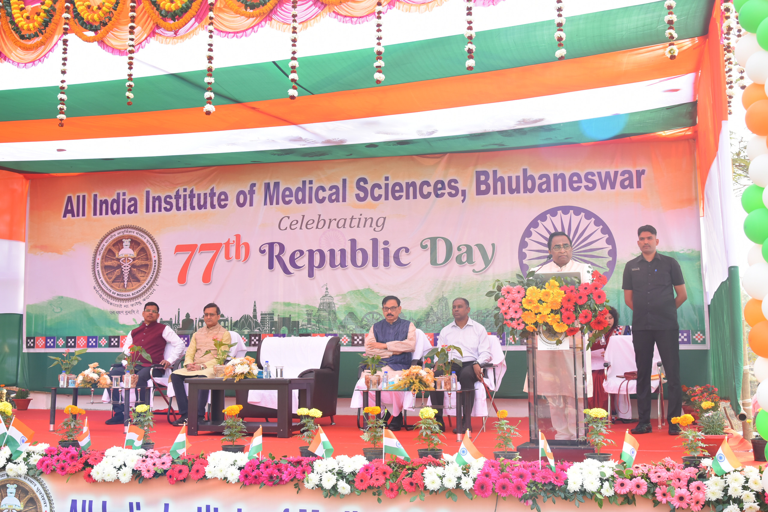ଭୁବନେଶ୍ୱର, ୨୬/୦୧/୨୦୨୬: ଦେଶପ୍ରେମର ଅନନ୍ୟ ପରିବେଶ ଏବଂ ବିପୁଳ ଉତ୍ସାହ ମଧ୍ୟରେ ଏମ୍ସ ଭୁବନେଶ୍ୱରରେ ୭୭ତମ ଗଣତନ୍ତ୍ର ଦିବସ ପାଳିତ ହୋଇଯାଇଛି। ପ୍ରତିଷ୍ଠାନର ଅଧ୍ୟାପକ, ଅଧ୍ୟାପିକା, ଛାତ୍ରଛାତ୍ରୀ ଏବଂ କର୍ମଚାରୀଙ୍କ ଉପସ୍ଥିତିରେ କାର୍ଯ୍ୟନିର୍ବାହୀ ନିର୍ଦ୍ଦେଶକ ଡ. ଆଶୁତୋଷ ବିଶ୍ୱାସ ଜାତୀୟ ପତାକା ଉତ୍ତୋଳନ କରିଥିଲେ।