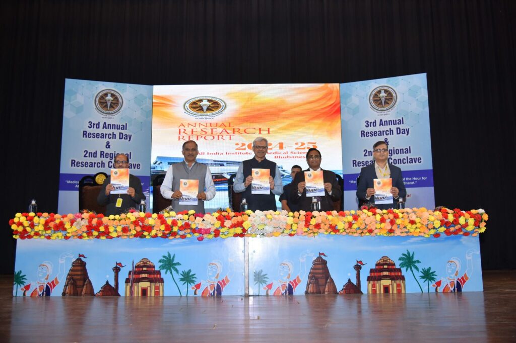 ଗବେଷଣା ଏବଂ ନବସୃଜନ କାର୍ଯ୍ୟକଳାପର ପ୍ରଗତିକୁ ପ୍ରୋତ୍ସାହିତ କରିବା କ୍ଷେତ୍ରରେ, ଏମ୍‌ସ ଭୁବନେଶ୍ବର ଏହାର ତୃତୀୟ ବାର୍ଷିକ ଅନୁସନ୍ଧାନ ଦିବସ ଏବଂ ଦ୍ୱିତୀୟ ଆଞ୍ଚଳିକ ଅନୁସନ୍ଧାନ ସମ୍ମିଳନୀ ୨୦୨୫ ପାଳନ କରିଛି। ଏହି କାର୍ଯ୍ୟକ୍ରମର ବିଷୟବସ୍ତୁ ଥିଲା “ଚିକିତ୍ସା ନବସୃଜନ: ଆତ୍ମନିର୍ଭର ଭାରତ, ବିକଶିତ ଭାରତ ପାଇଁ ସମୟର ଆବଶ୍ୟକତା”।