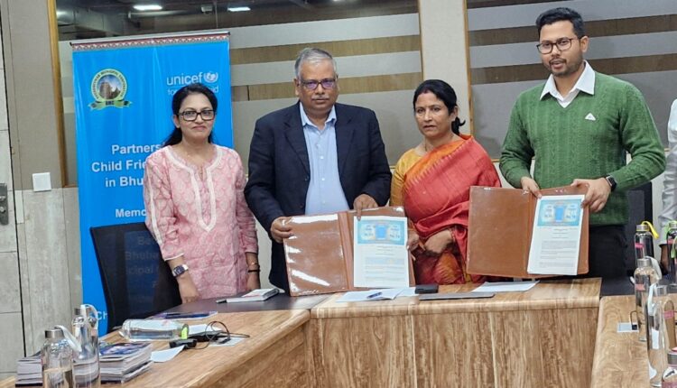 ଭୁବନେଶ୍ବର : ଭୁବନେଶ୍ୱର ମ୍ୟୁନିସିପାଲ୍ କର୍ପୋରେସନ୍ (BMC) ଏବଂ ୟୁନିସେଫ(UNICEF) ଓଡ଼ିଶା ଆଳି ଟିଏମସି କାର୍ଯ୍ୟାଳୟରେ ଏକ ବୁଝାମଣାପତ୍ର (MoU) ସ୍ବାକ୍ଷର କରିଛନ୍ତି ଯାହା ଦ୍ବାରା ସହରର ସହରାଞ୍ଚଳର ରୁଦୃଶ୍ୟ ଗୁଡ଼ିକୁ ସୁରକ୍ଷିତ, ସବୁଜ ଏବଂ ଅଧିକ ଶିଶୁ-ଅନୁକୂଳ ସ୍ଥାନରେ ପରିଣତ କରାଯାଇ ପାରିବ ।