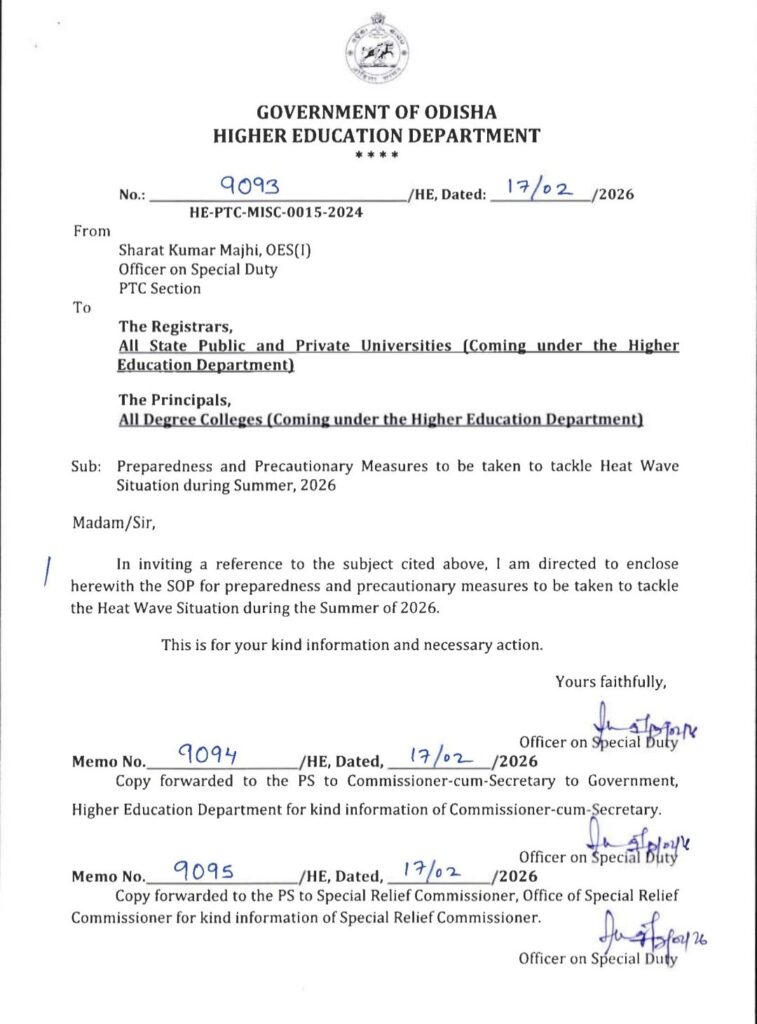 ଗ୍ରୀଷ୍ମ ପ୍ରବାହ କୁ ଦୃଷ୍ଟିରେ ରଖି ଉଚ୍ଚ ଶିକ୍ଷା ବିଭାଗର ଗାଇଡଲାଇନ ଜାରି