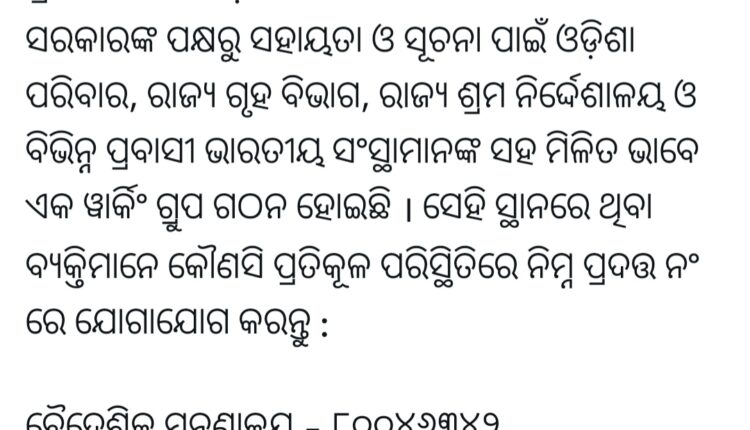 ମଧ୍ୟପ୍ରାଚ୍ୟରେ ପ୍ରବାସୀ ଓଡ଼ିଆଙ୍କ ପାଇଁ ହେଲ୍ପଲାଇନ ଜାରି