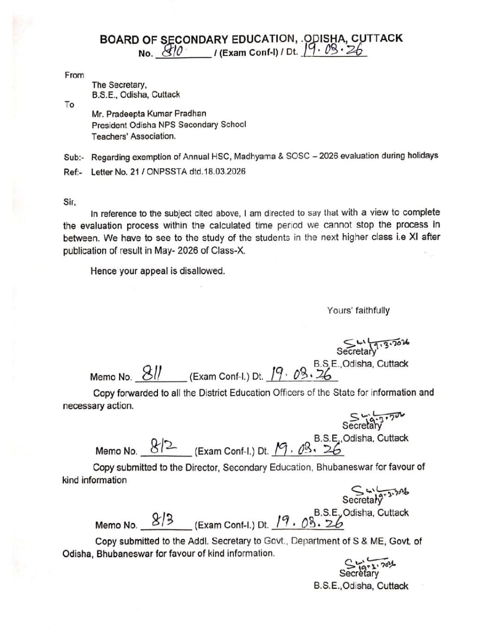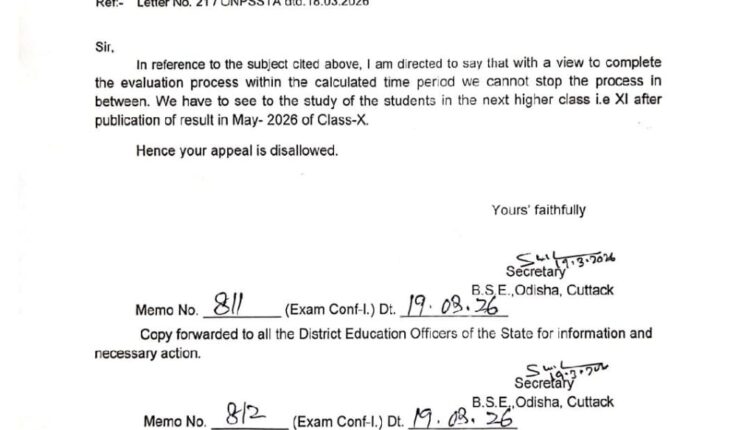 ଭୁବନେଶ୍ୱର,୧୯/୦୩:ଓଡିଶା NPS ମାଧ୍ୟମିକ ସ୍କୁଲ ଶିକ୍ଷକ ସଂଘକୁ ଚିଠି ଲେଖିଲା ମାଧ୍ୟମିକ ଶିକ୍ଷା ପରିଷଦ। ରାମନବମୀ ଓ ଇଦ୍ ଉଲ୍ ଫିତର ପର୍ବରେ ମଧ୍ଯ ମାଟ୍ରିକ ଖାତା ମୂଲ୍ୟାଙ୍କନ ଜାରି ରହିବ। ଖାତା ଦେଖା ପର୍ଯ୍ୟାୟ ନିର୍ଦିଷ୍ଟ ସମୟ ସୀମା ରେ ସାରିବାକୁ ଧାର୍ଯ୍ୟ ହୋଇଛି।ତେଣୁ କୌଣସି ପରିସ୍ଥିତିରେ ମଧ୍ୟ ଖାତା ଦେଖା ବନ୍ଦ ହୋଇପାରିବ ନାହିଁ।ଓଡିଶା NPS ଶିକ୍ଷକ ସଂଘ ଆବେଦନ କୁ ମଞ୍ଜୁର କଲା ନାହିଁ ବୋର୍ଡ଼ କର୍ତ୍ତୁପକ୍ଷ। ରେଜଲ୍ଟ ପ୍ରକାଶ ଶୀଘ୍ର କରାଗଲେ ପରୀକ୍ଷାର୍ଥୀମାନେ ଉଚ୍ଚଶିକ୍ଷା ପାଇଁ ଯିବେ ତେଣୁ ଖାତା ମୂଲ୍ୟାଙ୍କନ ଧାର୍ଯ୍ୟ ସମୟରେ ହିଁ ସରିବ।