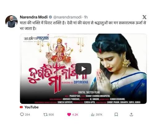 ଭୁବନେଶ୍ୱର,୨୨/୦୩:ପ୍ରଧାନମନ୍ତ୍ରୀ ନରେନ୍ଦ୍ର ମୋଦିଙ୍କ ସୋସିଆଲ୍ ମିଡିଆ ପେଜ୍ରେ ଓଡ଼ିଆ କଣ୍ଠଶିଳ୍ପୀ ଦୀପ୍ତିରେଖା ପାଢ଼ୀଙ୍କ ଗୀତ । ଚୈତ୍ର ନବରାତ୍ରୀ ଅବସରରେ ପ୍ରଧାନମନ୍ତ୍ରୀ ନରେନ୍ଦ୍ର ମୋଦି ନିଜ ସୋସିଆଲ୍ ମିଡିଆ ପେଜ୍ରେ ଏକ ଭକ୍ତିମୟ ଓଡ଼ିଆ ଗୀତର ୟୁଟ୍ୟୁବ୍ ଲିଙ୍କ୍ ସେୟାର କରିଛନ୍ତି । ଗୀତର ନାଁ ରହିଛି ଦୁର୍ଗତିନାଶିନୀ ମାଆ ।ଏହି ଗୀତକୁ ଗାଇଛନ୍ତି ଓଡ଼ିଆ କଣ୍ଠଶିଳ୍ପୀ ଦୀପ୍ତିରେଖା ପାଢ଼ୀ।ଗାୟିକା ଦୀପ୍ତିରେଖା ଗାଇଥିବା ଏହି ଭଜନକୁ ସେୟାର୍ କରି ପ୍ରଧାନମନ୍ତ୍ରୀ ଲେଖିଛନ୍ତି ‘‘ମାଆଙ୍କ ଭକ୍ତିରେ ଶକ୍ତି ରହିଛି । ଦେବୀ ମାଆଙ୍କ ବନ୍ଦନାରେ ଶ୍ରଦ୍ଧାଳୁଙ୍କ ମନ ସକାରାତ୍ମକ ଶକ୍ତିରେ ଭରିଯାଏ ।’’ସେପଟେ ଏହାକୁ ନେଇ କଣ୍ଠଶିଳ୍ପୀ ଦୀପ୍ତିରେଖା କହିଛନ୍ତି ମୁଁ କେବେ କଳ୍ପନା କରି ନଥିଲି ଯେ ମୋର ଭକ୍ତି ଗୀତ ଏବଂ ଭିଡିଓ ପ୍ରଧାନମନ୍ତ୍ରୀ ନିଜେ ସେୟାର କରିବେ। ତାଙ୍କୁ ଆଗାମୀ କ୍ୟାରିଅରରେ ଆହୁରି ଭଲ ପ୍ରଦର୍ଶନ କରିବାକୁ ପ୍ରେରଣା ଦେବ।