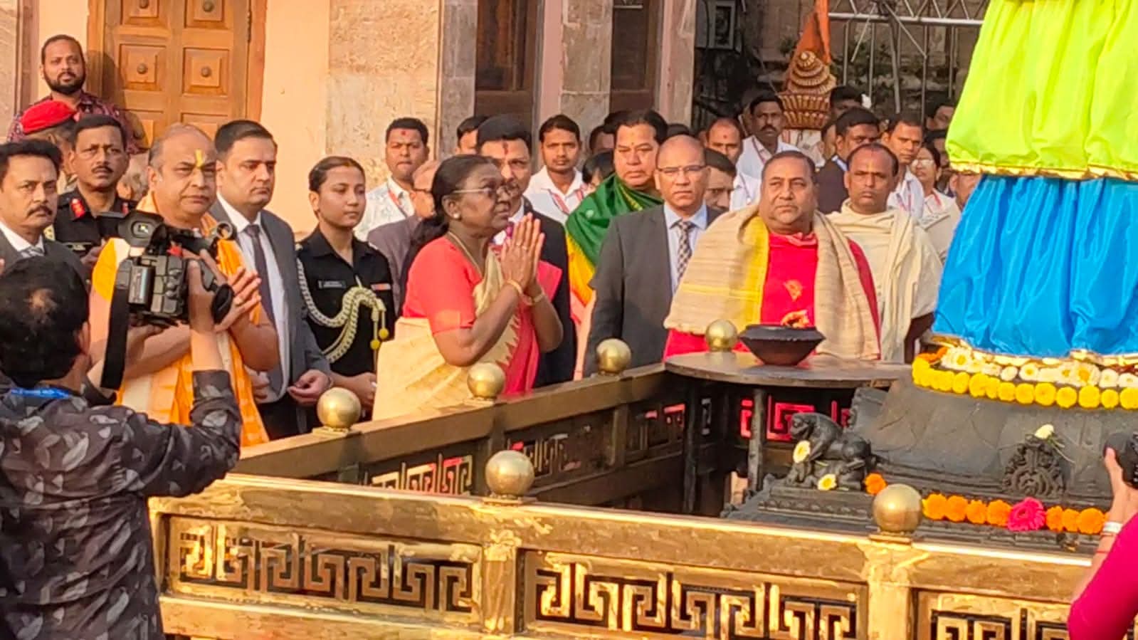 ଶ୍ରୀମନ୍ଦିର ପ୍ରବେଶ ପୂର୍ବରୁ ରାଷ୍ଟ୍ରପତି ଅରୁଣ ସ୍ତମ୍ଭକୁ ପ୍ରଣାମ କରି ମହାପ୍ରଭୁଙ୍କ ଚରଣେ ମଥା ନମାଇଥିଲେ। ଶ୍ରୀମନ୍ଦିର ପରିସରରେ ରାଷ୍ଟ୍ରପତିଙ୍କୁ ପରମ୍ପରାଗତ ଭାବେ ଗଜପତି ମହାରାଜା ଦିବ୍ୟସିଂହ ଦେବ, ଓଡ଼ିଶାର ରାଜ୍ୟପାଳ ଏବଂ ମୁଖ୍ୟମନ୍ତ୍ରୀ ସ୍ବାଗତ ଜଣାଇଥିଲେ। ଏହି ଗସ୍ତ ସମୟରେ ରାଷ୍ଟ୍ରପତିଙ୍କ ସହ ରାଜ୍ୟପାଳ ଓ ମୁଖ୍ୟମନ୍ତ୍ରୀ ମଧ୍ୟ ଉପସ୍ଥିତ ଥିଲେ।