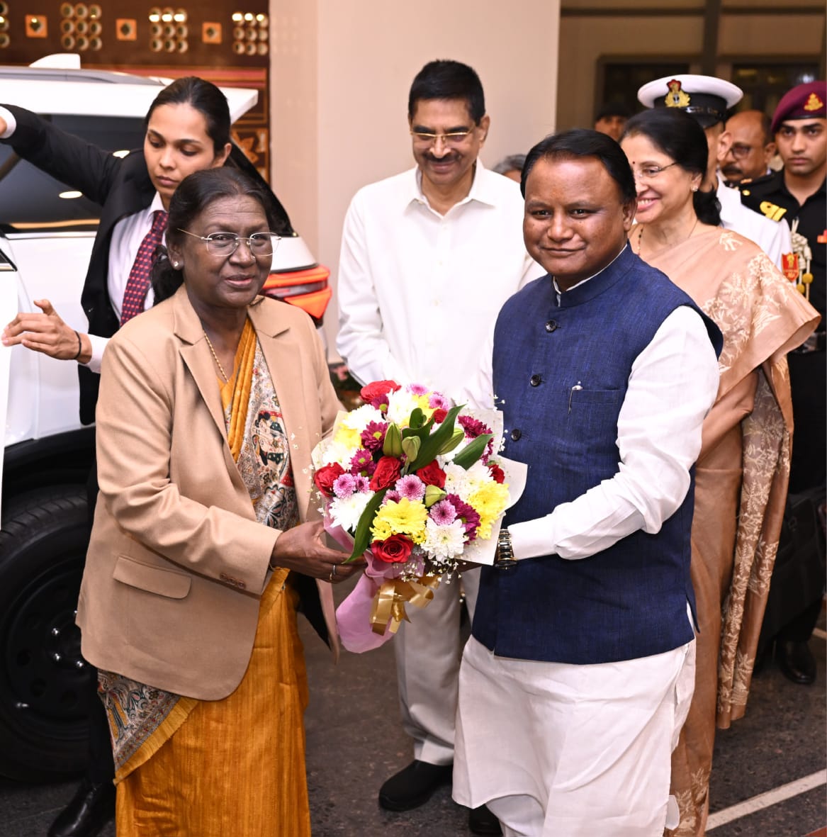 ଭୁବନେଶ୍ଵର,୦୨/୦୨: ଭୁବନେଶ୍ଵରରେ ରାଷ୍ଟ୍ରପତି ଦ୍ରୌପଦୀ ମୁର୍ମୁ । ଭୁବନେଶ୍ଵର ବିମାନବନ୍ଦରରେ ପହଞ୍ଚିବା ପରେ ରାଷ୍ଟ୍ରପତିଙ୍କୁ ରାଜ୍ୟପାଳ ଓ ମୁଖ୍ୟମନ୍ତ୍ରୀ ସ୍ଵାଗତ କରିଛନ୍ତି । ବିମାନବନ୍ଦରରୁ ରାଷ୍ଟ୍ରପତି ସିଧାସଳଖ ରାଜଭବନ ଯାଇଥିବା ବେଳେ ସେଠାରେ ରାତ୍ରୀଯାପନ କରିବେ ।
