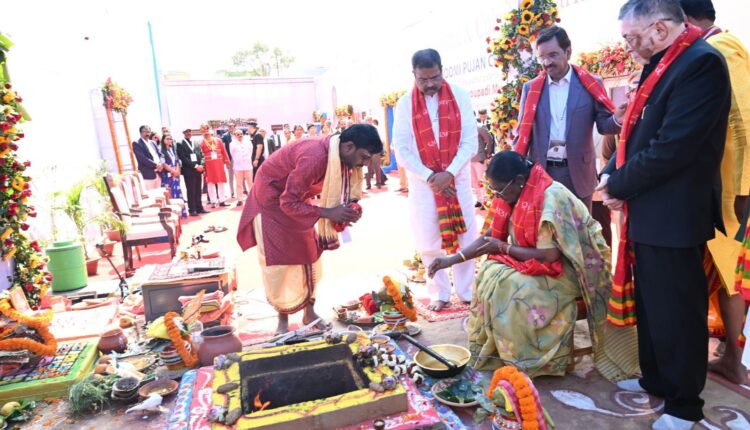 ଜାମସେଦପୁର,୨୬/୦୨:ଝାଡଖଣ୍ଡ ଜାମସେଦପୁର ଠାରେ ଶ୍ରୀ ଜଗନ୍ନାଥ ଆଧ୍ୟାତ୍ମିକ ଏବଂ ସାଂସ୍କୃତିକ କେନ୍ଦ୍ରର ଭୂମି ପୂଜନ ଏବଂ ମହାପ୍ରଭୁ ଶ୍ରୀ ଜଗନ୍ନାଥଙ୍କ ଭବ୍ୟ ମନ୍ଦିରର ଶିଳାନ୍ୟାସ କାର୍ଯ୍ୟକ୍ରମ ମାନ୍ୟବର ରାଷ୍ଟ୍ରପତି ଶ୍ରୀମତୀ ଦ୍ରୌପଦୀ ମୁର୍ମୁଙ୍କ କରକମଳରେ ସମ୍ପନ୍ନ ହୋଇଛି ।