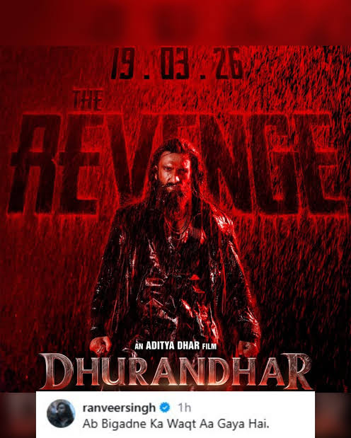 ପୋଷ୍ଟରର ଉପର ଭାଗରେ 19.03.26 ତାରିଖ ସ୍ପଷ୍ଟ ଭାବେ ଲେଖାଯାଇଥିବା ବେଳେ ସହ କ୍ୟାପସନରେ ରଣଵୀର ଲେଖିଛନ୍ତି “ଅବ ବିଗଡନେ କା ୱକ୍ତ ଆ ଗୟା ହୈ।”ସେ ଏହା ମଧ୍ୟ ସ୍ପଷ୍ଟ କରିଛନ୍ତି ଯେ ‘ଧୁରନ୍ଧର: ଦ ରିଭେଞ୍ଜ’ ଟିଜର ଆଜି ଦିନ 12:12ରେ