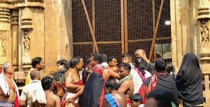 ଭୁବନେଶ୍ଵର,୧୫/୦୨:ଏକାମ୍ର କ୍ଷେତ୍ରରେ ଲିଙ୍ଗରାଜ ମହାପ୍ରଭୁଙ୍କ ଦର୍ଶନ ପାଇଁ ଶ୍ରଦ୍ଧାଳୁଙ୍କ ପ୍ରବଳ ଭିଡ଼ । ଭକ୍ତମାନେ ଲମ୍ବା ଲାଇନରେ ଘଣ୍ଟା ଘଣ୍ଟା ଧରି ଅପେକ୍ଷା କରୁଛନ୍ତି । କିନ୍ତୁ ସେପଟେ ମନ୍ଦିରରେ ଭିତରେ ଭିଆଇପି ଦର୍ଶନକୁ ନେଇ ଶ୍ରଦ୍ଧାଳୁଙ୍କ ମଧ୍ୟରେ ଅସନ୍ତୋଷ ଦେଖାଦେଇଥିବା ବେଳେ ଲିଙ୍ଗରାଜ ମନ୍ଦିର ଭିତରେ ୨ ସେବାୟତ ଗୋଷ୍ଠୀ ମୁହାଁମୁହିଁ ହୋଇଛନ୍ତି । ଧସ୍ତାଧସ୍ତି ସାଙ୍ଗକୁ ମାର୍ପିଟ୍ ପରିସ୍ଥିତିରୁ ଉତ୍ତେଜନା ଦେଖା ଦେଇଛି। ନିଜ ଲୋକଙ୍କ ଦର୍ଶନକୁ ନେଇ ବିବାଦ ଓ ଉତ୍ତେଜନା ସୃଷ୍ଟି ହୋଇଥିବା ଜଣାପଡିଛି।ଏହା ପରେ ମହା ଶିବରାତ୍ରି ସୁରକ୍ଷା ବ୍ୟବସ୍ଥା ପାଇଁ ନିୟୋଜିତ ପୋଲିସ କର୍ମଚାରୀମାନେ ତୁରନ୍ତ ହସ୍ତକ୍ଷେପ କରି ଶାନ୍ତି ଫେରାଇ ଆଣନ୍ତି। ସୂତ୍ର ଅନୁଯାୟୀ ହସ୍ତକ୍ଷେପ ସମୟରେ କିଛି ସେବାୟତ ଏବଂ ପୋଲିସ ମଧ୍ୟରେ ସାମାନ୍ୟ ସଂଘର୍ଷ ମଧ୍ୟ ହୋଇଥିଲା। ତଥାପି, କର୍ତ୍ତୃପକ୍ଷ ତୁରନ୍ତ ପରିସ୍ଥିତିକୁ ନିୟନ୍ତ୍ରଣକୁ ଆଣିବାରେ ସଫଳ ହୋଇଥିଲେ।