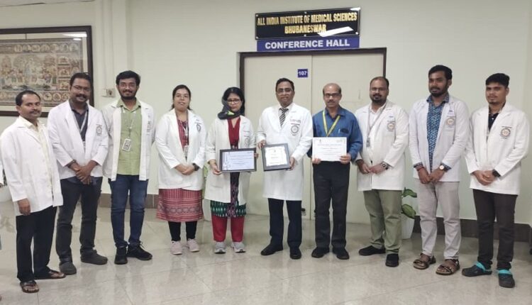 ଭୁବନେଶ୍ୱର : ଭାଇରଲ୍ ଡାଇଗ୍ନୋଷ୍ଟିକ୍ସରେ ଉଚ୍ଚମାନର ନିର୍ଣ୍ଣୟ ସେବା, ଗବେଷଣା ଏବଂ ଗୁଣବତ୍ତା କ୍ଷେତ୍ରରେ ଉଲ୍ଲେଖନୀୟ ଅବଦାନ ନିମନ୍ତ ଏମ୍ସ ଭୁବନେଶ୍ୱରର ଭାଇରାଲ୍ ରିସର୍ଚ୍ଚ ଏବଂ ଡାଇଗ୍ନୋଷ୍ଟିକ୍ ଲାବୋରେଟୋରୀ (ଭିଆର୍ଡିଏଲ୍) କୁ ଭାରତ ସରକାରଙ୍କ କେନ୍ଦ୍ର ସ୍ୱାସ୍ଥ୍ୟ ଏବଂ ପରିବାର କଲ୍ୟାଣ ମନ୍ତ୍ରଣାଳୟ ପକ୍ଷରୁ ସମ୍ମାନଜନକ ରୌପ୍ୟ ପୁରସ୍କାର ପ୍ରଦାନ କରାଯାଇଛି।